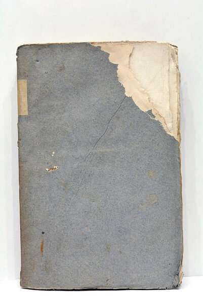 284 pages. (22x15 Cm). Broché. Dos manuscrit. Manque de papier important en coin supérieur en premier plat et en coiffe supérieure. Petits trous de vers. Rousseurs claires. Mouillure en reliure sur les premiers feuillets. Exemplaire non-coupé. Couverture fragilisée à certains cahiers. Petites rousseurs éparses.