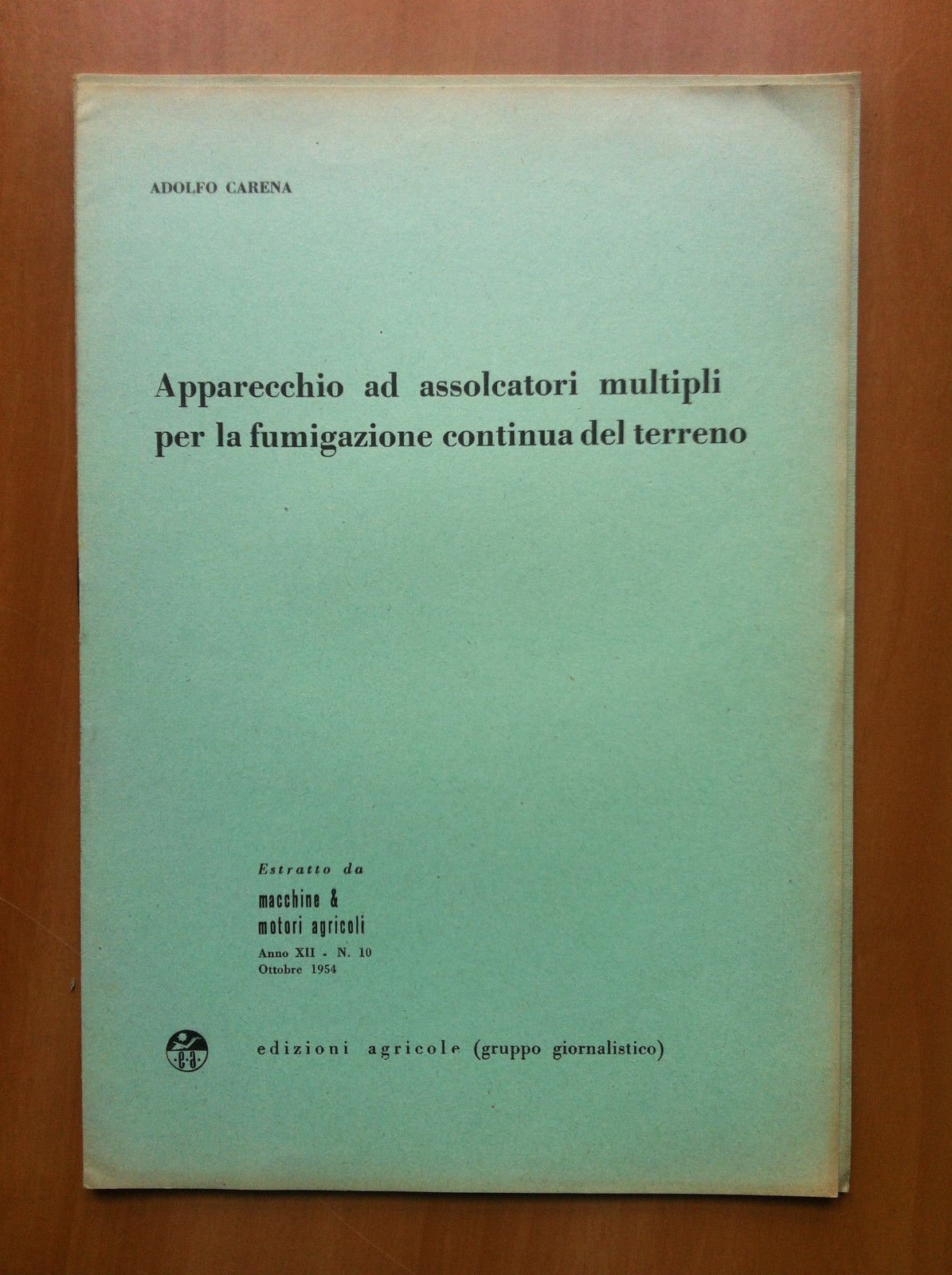 APPARECCHIO AD ASSOLCATORI MULTIPLI PER LA FUMIGAZIONE CONTINUA DEL TERRENOProf. Ing. A. CarenaEstratto da Macchie e motori Agricoli Anno XII n^ 10 Ottobre 1954ottime condizioni - 7 pagine formato 17,5x25,5 cm(20 g)E15081