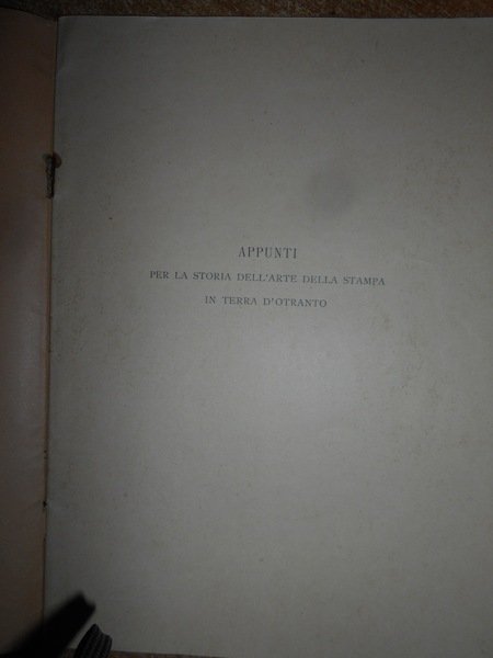 Appunti per La Storia dell' Arte della Stampa in Terra d' Otranto