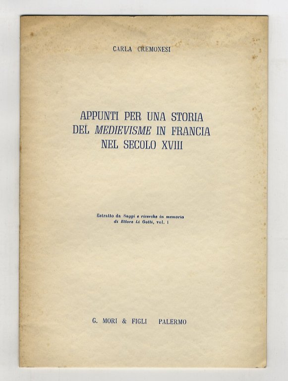 Appunti per una storia del medievisme in Francia nel secolo XVIII.