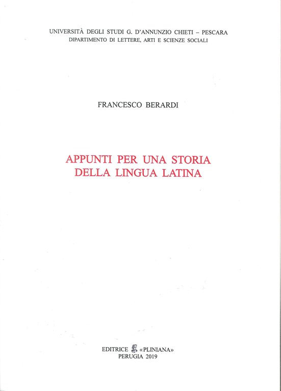 Appunti per una Storia della Lingua Latina, Selci di San Giustino, Pliniana, 2019