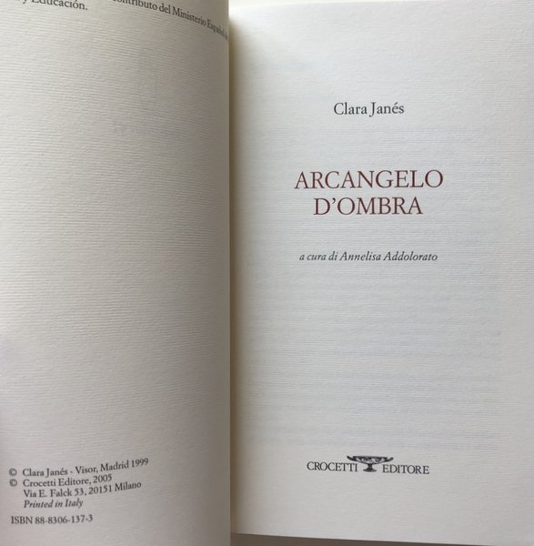 ARCANGELO D'OMBRA. A CURA DI ANNELISA ADDOLORATO. (TESTO ORIGINALE SPAGNOLO A FRONTE)