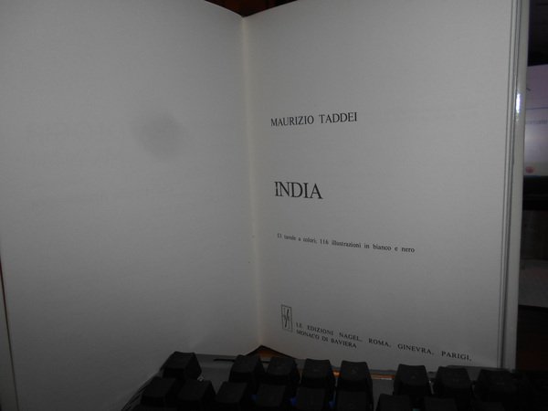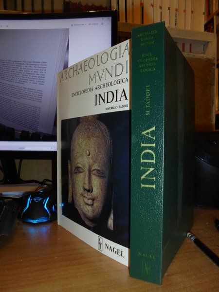 MAURIZIO TADDEI. Roma, Nagel Edizioni, 1976. Archaelogia Mundi. Enciclopedia Archeologica. INDIA. In-8°, pelle verde edit. con titolo in oro al dorso e sovracopertina ill. a col. 259 pp. con 53 tavole a colori; 116 illustrazioni in bianco e nero. Come nuovo. Uff. stanzetta mob. a sinistra
