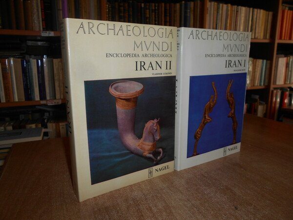 HOUOT JEAN-LOUIS-LUKONIN VLADIMIR. Ginevra, Nagel Edizioni, 1976. ARCHAEOLOGIA MUNDI. Enciclopedia Archeologica. IRAN I. Traduzione di Raffaele Biscione. IRAN II. Collana diretta da Jean Marcadé. 2 volumi in-8°, pelle verde con titoli in oro al dorso, sovracopertine ill. a col. I. Dalle origini agli Achemenidi. 227 pp. con 64 tavole a colori; 96 illustrazioni in bianco e nero. II. Dai Seleucidi ai Sasanidi. Traduzione di Marcello Piperno. 231 pp. con 76 tavole a colori, 141 illustrazioni in bianco e nero. Come nuovi. Uff. stanzetta mob. a sinistra.