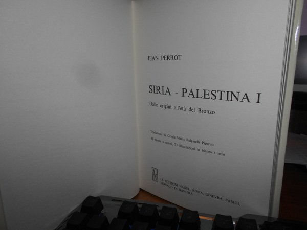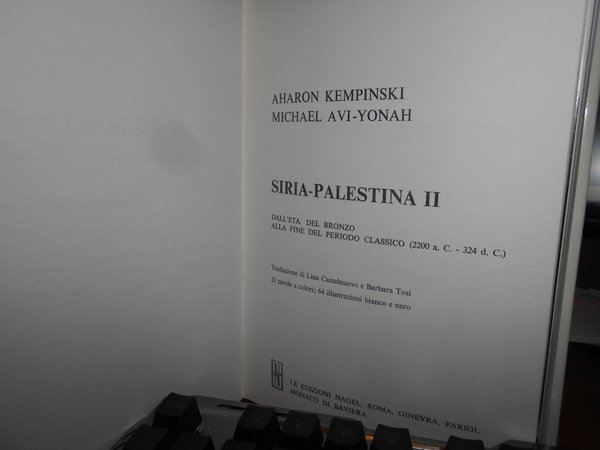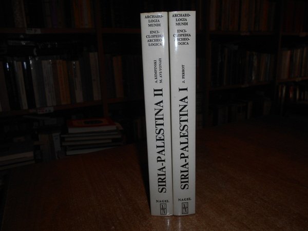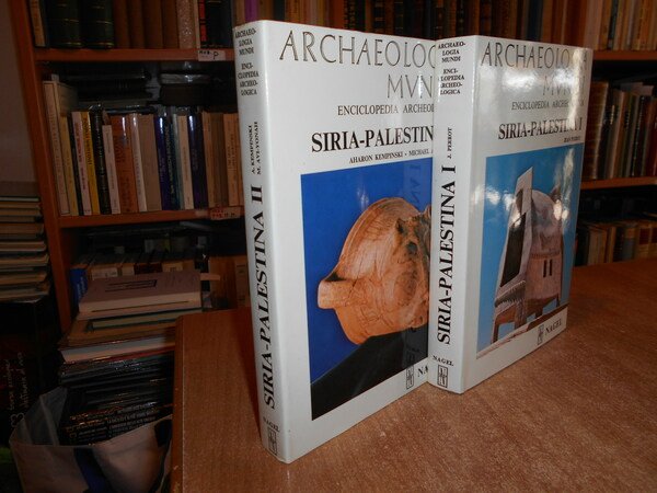JEAN PERROT - AHARON KEMPINSKI - MICHAEL AVI-YONAH. Ginevra, Nagel Edizioni, 1977. ARCHAEOLOGIA Mundi. SIRIA-PALESTINA I. e II. 2 volumi in-8°, cartonato verde con titolo in oro al dorso e sovracopertine ill. a col. Vol. I. Dalle origini all' età del bronzo. Traduzione di Grazia Maria Bulgarelli Piperno. 189 pp. con 45 tavole a colori; 73 illustrazioni in bianco e nero.; Vol. II. Dall' età del bronzo alla fine del periodo classico (2200 a. C. - 324 d. C.) Traduzione di Lina Castelnuovo e Barbara Tosi. 212 pp. con 21 tavole a colori; 64 illustrazioni in bianco e nero. In ottimo stato di conservazione. Uff. stanzetta mob. sinistra