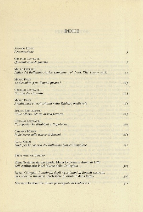 - Riviste, Empoli, Valdelsa, Architettura, Edilizia rurale, Colle Alberti, Colle alla Pietra, Medievalistica, Contado fiorentino, Ferruccio Busoni, Musica moderna