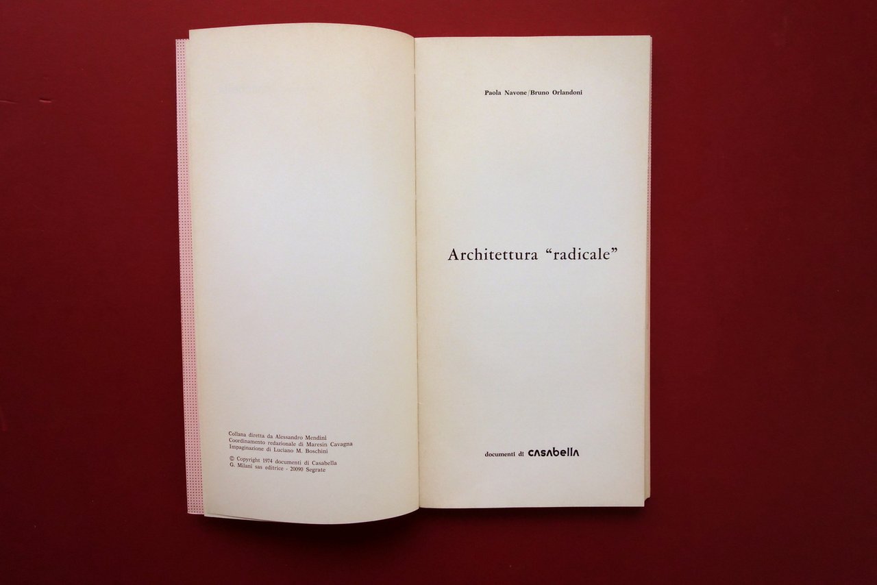 Rara pubblicazione - dossier fuori commercio, data come omaggio agli abbonati della rivista "Casabella". Importante summa sui principali concetti e aspetti dell'architettura radicale, a cui "Casabella" darà ampio spazio nei numeri usciti tra il 1973 e il 1974.