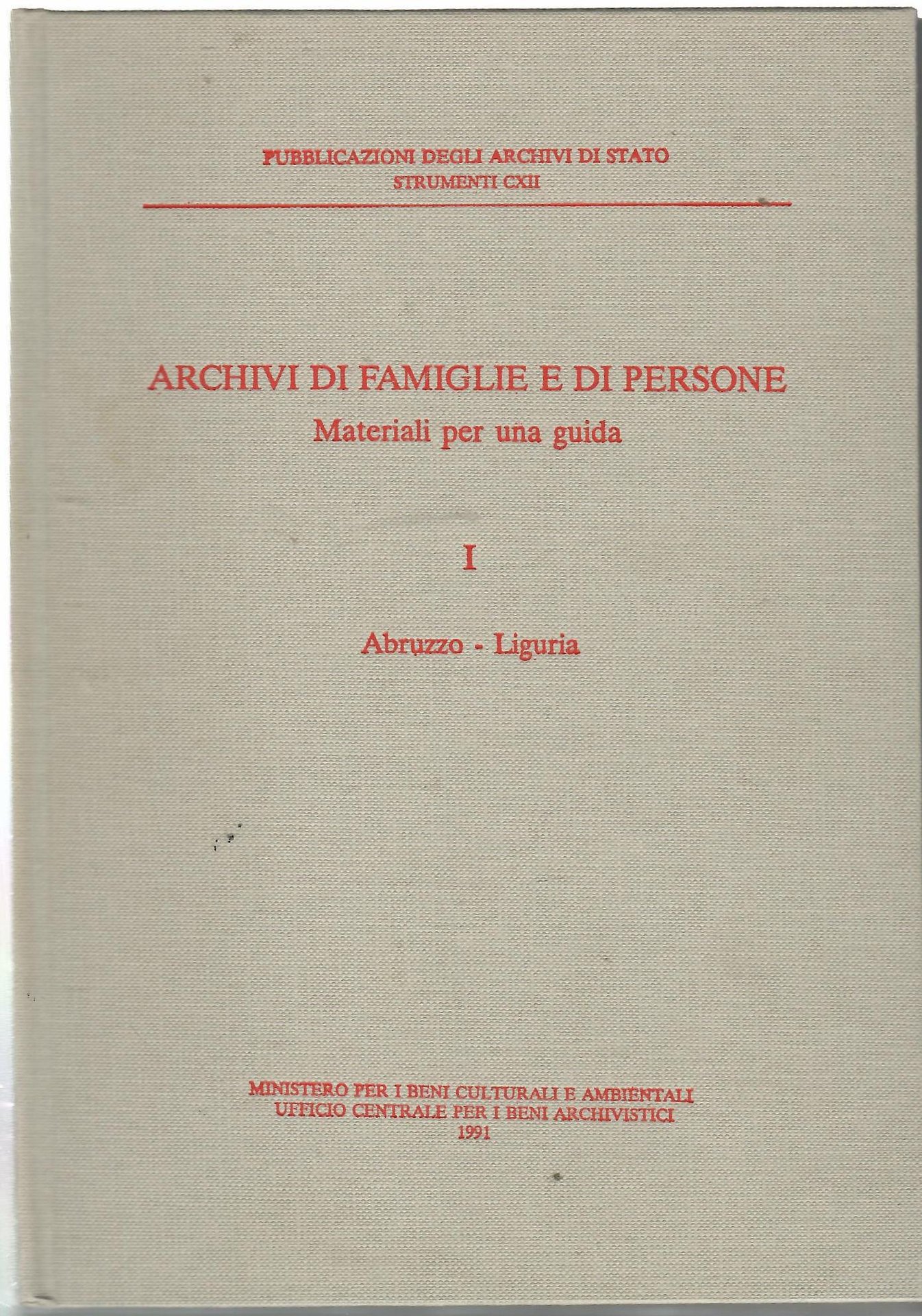 Archivi d Famiglie e Di Persone. Materiali Per Ua Guida- I Abruzzo - Liguria
