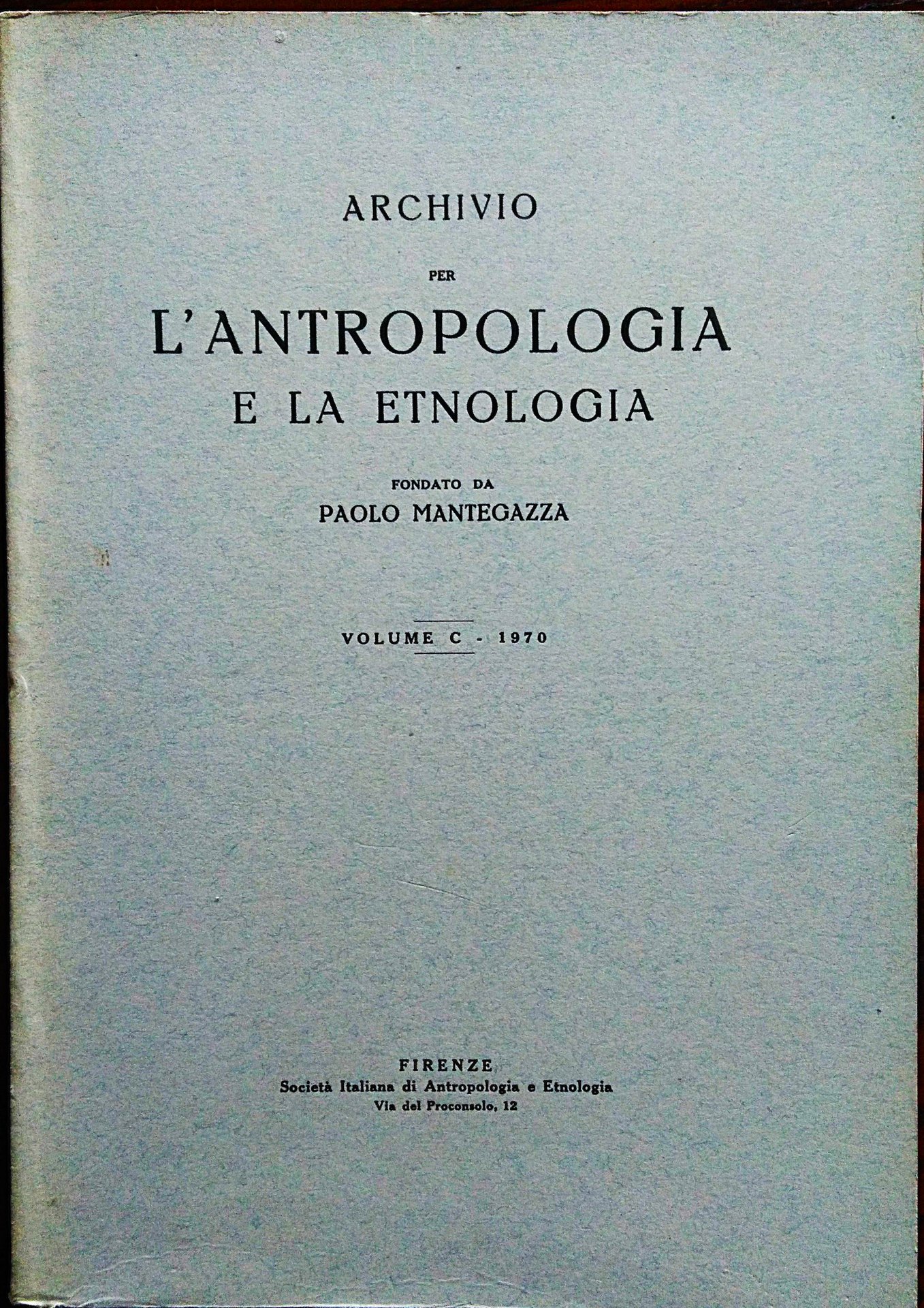 Archivio per l'antropologia e la etnologia fondato da Paolo Mantegazza. Volume C, 1970.