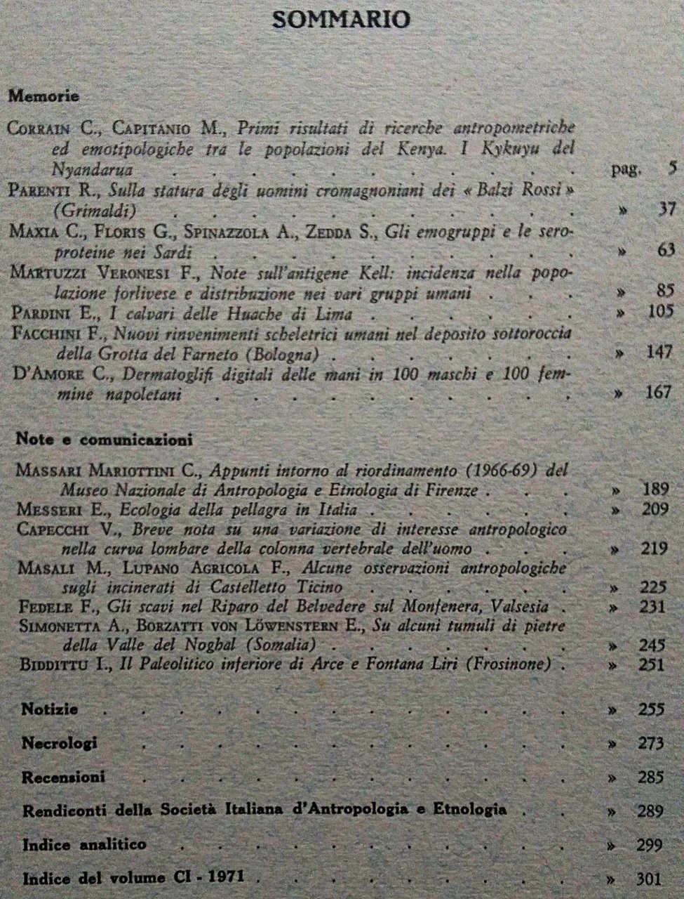 Archivio per l'antropologia e la etnologia fondato da Paolo Mantegazza. Volume CI, 1971