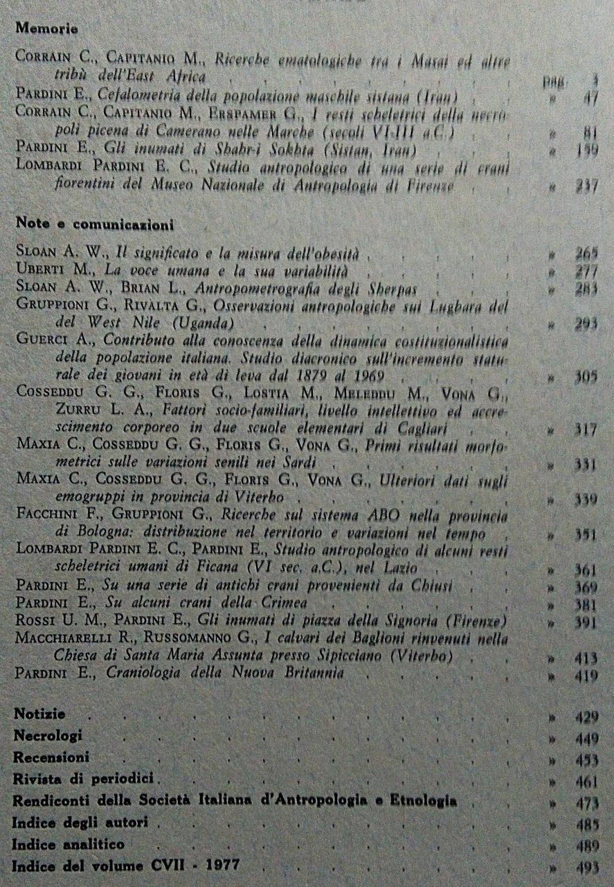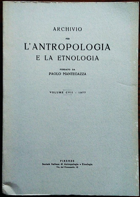 Archivio per l'antropologia e la etnologia fondato da Paolo Mantegazza. Volume CVII, 1977.