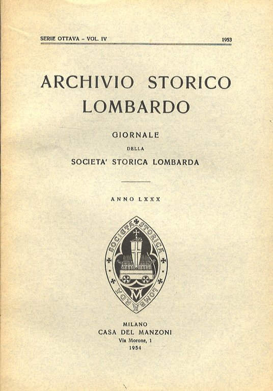 ARCHIVIO Storico Lombardo. Giornale della Società Storica Lombarda. Anno LXXX. 1953.