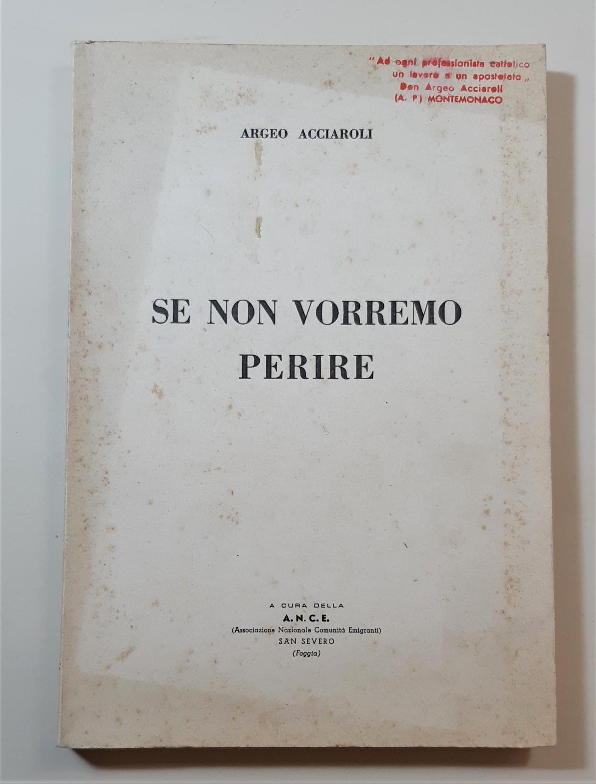 Argeo Acciaroli Se non vorremmo perire ANCE Associazione Nazionale comunit‡ emigranti San Severo 1958