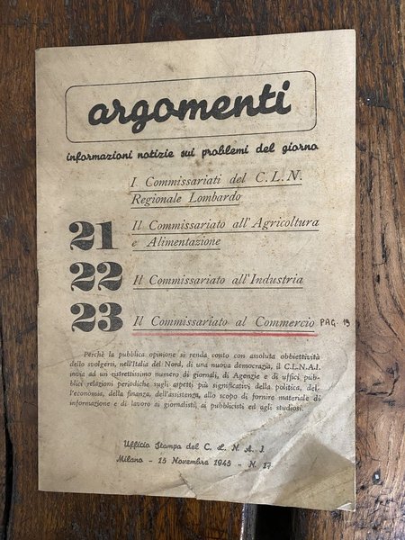 Argomenti Informazioni notizie sui problemi del giorno Numero 17 Milano 15 Novembre 1945