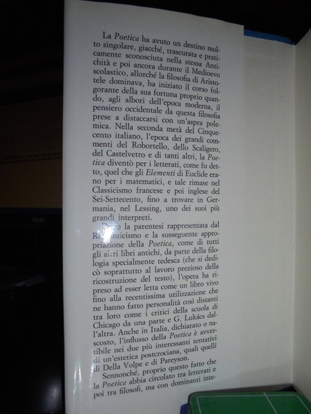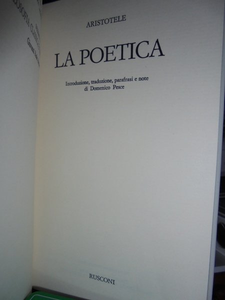 ARISTOTELE. La Poetica. Introduzione, traduzione, parafrasi e note di Domenico Pesce. Milano, Rusconi, 1981. In-8°, tela con sovracopertina. 160, (2) pp. Esemplare come nuovo. Neg. Mass. mob. P