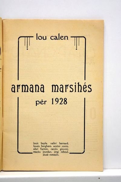 Armana marsihés pèr 1928. Louis Bayle. Valèri Bernard. Loueis Borghero. Antòni Conio. Alàri Fanton. Carulu Giovoni. Macèu Jourdan. Jòrgi Reboul. Jóusè Romezin.