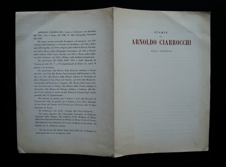 Arnoldo Ciarrocchi Alla Saletta 1954 Modena Ed Bassi e Nipoti