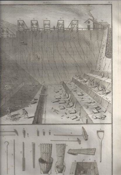 Sans lieu 1762 Sans lieu, 1762 - 1766. In-folio relié demi basane blonde, dos lisse trés orné et piéce de titre rouge, plats cartonnés. IV + 65 pages pour le texte + 4 planches gravées (P. PATTE) . Pour l'Art du couvreur : 56 pages + 4 planche gravées (P. PATTE). Cachet ex-libris M. HERICART DE THURY, Conseiller d' Etat. Reliure un peu frottée, manque de papier au cartonnage des plats, bel état intérieur et belle qualité des planches. Edition originale des deux ouvrages. Très bon exemplaire.