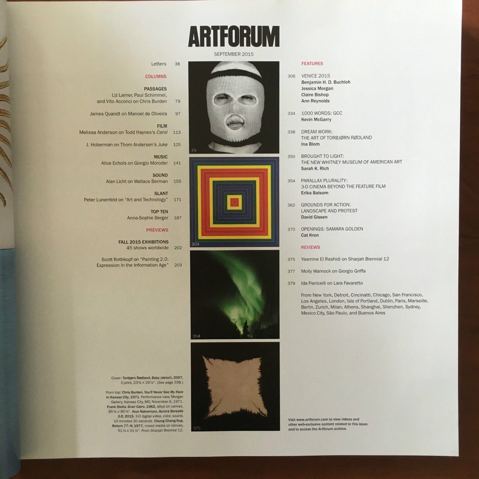 Artforum n^ 1 September 2015 Cover Torbjørn Rødland - E21765