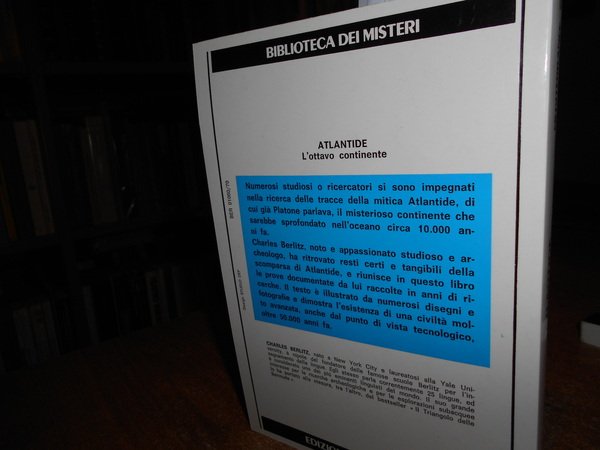 (Esoterismo) Charles, Berlitz. Roma, Edizioni Mediterranee, 1984. ATLANTIDE. L' ottavo continente. In-8°, cart. edit. 269, (2) pp. con illusrazioni in nero n.t. e 25 in tavole f.t. In stato di nuovo. Neg. mob. 2