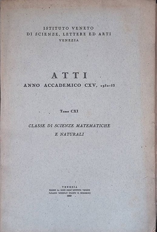 Atti anno accademico CXV 1952-53, tomo CXI. Classe di scienze matematiche e naturali