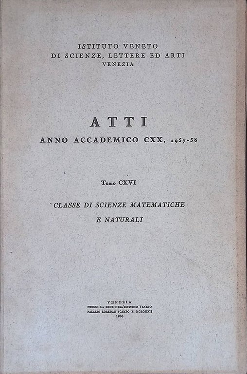 Atti anno accademico CXX 1957-58, tomo CXVI. Classe di scienze matematiche e naturali