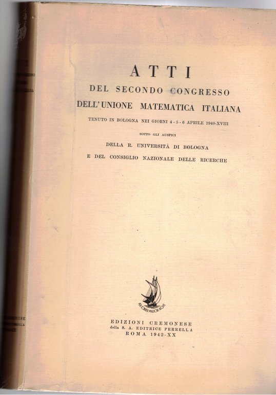 Atti del secondo congresso dell'Unione matematica Italiana, temuto a Bologna nei giorn 1-6 aprile 1940.