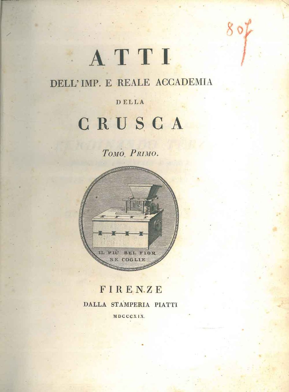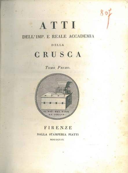 Atti dell'imp. e Reale Accademia della Crusca. Tomo primo