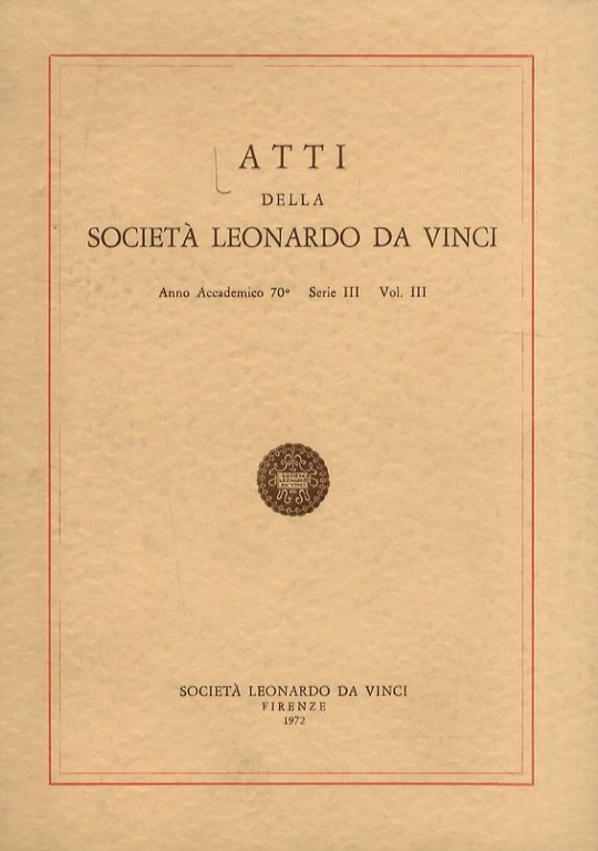 ATTI della Società Leonardo da Vinci. Anno accademico 70° - Serie III - Vol. III. A cura di Bruno Kiniger. [Attività dell'anno accademico 1971-72].
