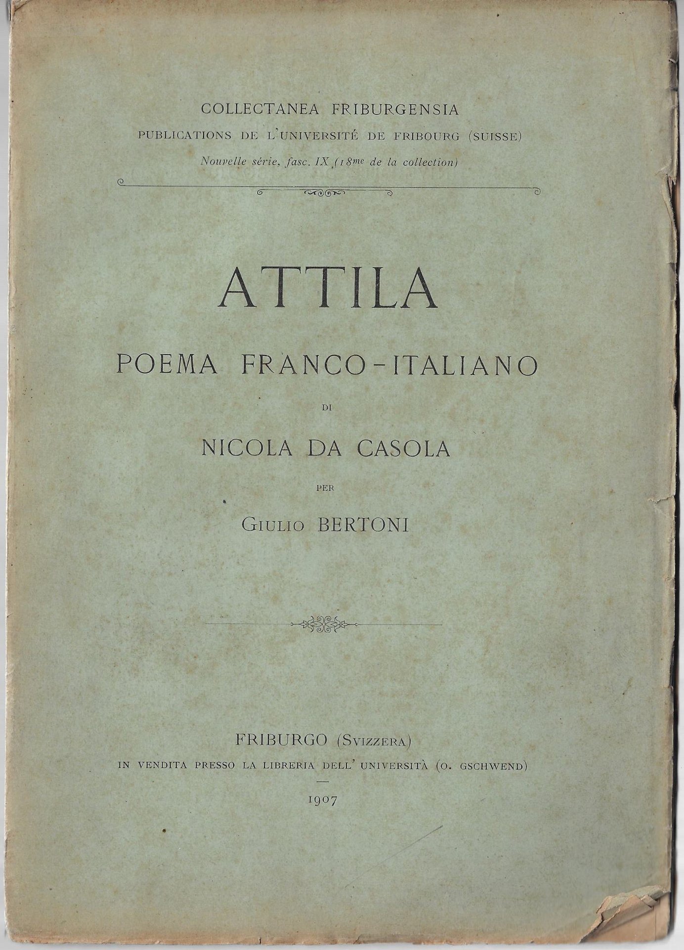 Attila, poema franco-italiano | Libri antichi e moderni | Bertoni, Giulio; Niccola da Casola, ,Bertoni, Giulio; Niccola da Casola