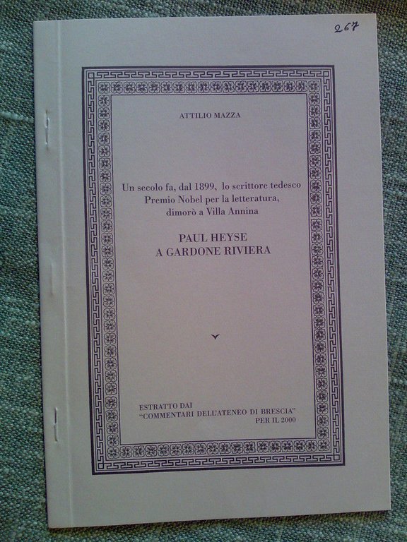 Mazza - PAUL HEYSE A GARDONE RIVIERA -autore : Attilio Mazzaestratto dai " Commentari dell' Ateneo di Brescia