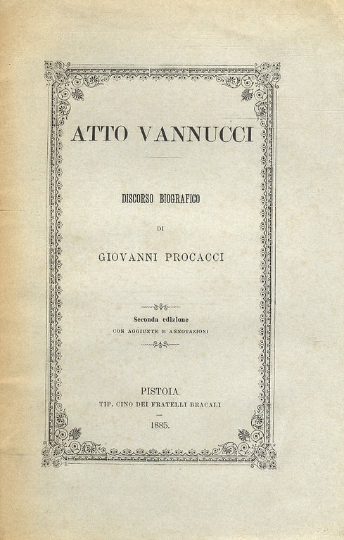 Atto Vannucci. Discorso biografico di Giovanni Procacci. Seconda edizione con aggiunte e annotazioni.