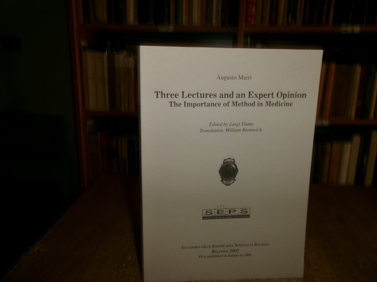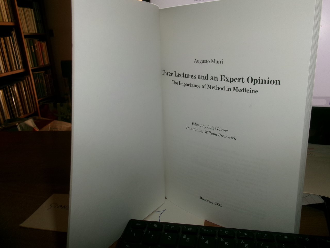 AUGUSTO MURRI. Three Lectures and an Expert Opinion The Importance of Method in Medicine. Edited: by Luigi Fiume. Translation: William Bromwich. In-8°, br. 132 pp. Come nuovo con testo in inglese. Uff. stanz sinistra II - 1