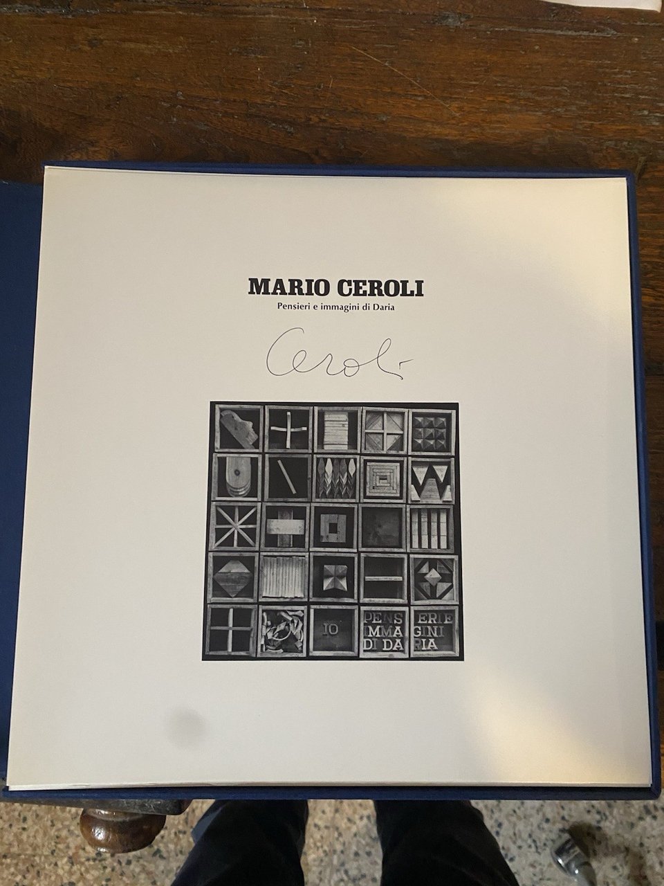 Con una litografia originale di Mario Ceroli tirata in 100 esemplari numerati e firmati dall'artista Esemplare numero 31/100 In 4° Fogli sciolti in cofanetto editoriale I° edizione Illustrazioni in bianco nero Copia firmata Da Mario Ceroli e Giuseppe Chiari Ottimo stato
