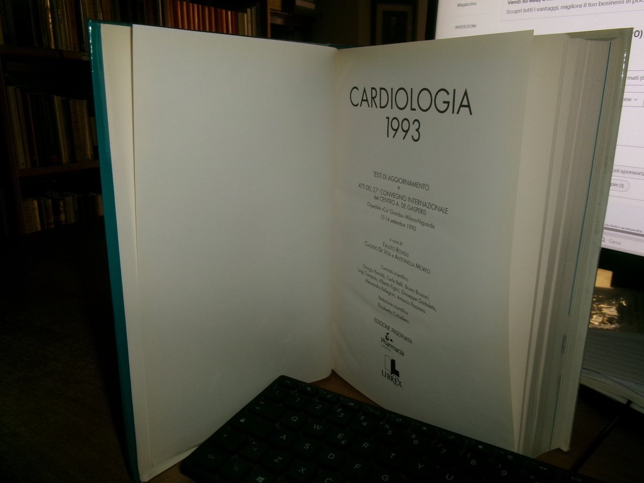 Autori Vari. CARDIOLOGIA 1993 Testi di aggiornamento e Atti del 27° Convegno Internazionale del CENTRO A. DE GASPERIS a cura di Fausto Rovelli Claudio De Vita e Antonella Moreo. Milano, Librex, 1994. In-8°, similpelle edit. con titoli in oro, sovracopertina. XXI, 943 pp. con figure a colori e in bianco e nero n.t. Ottimo stato. Uff. salon. sporta 10
