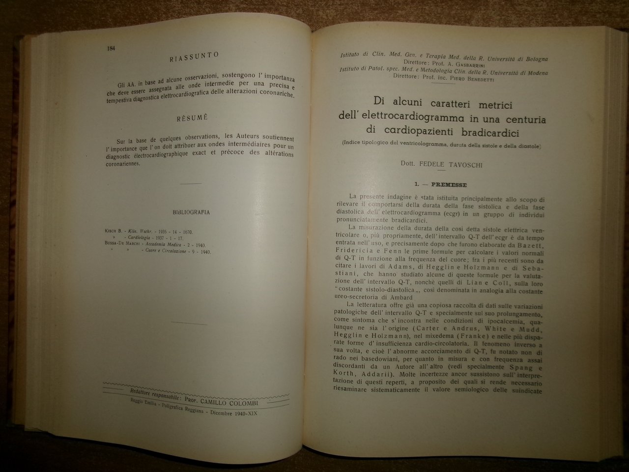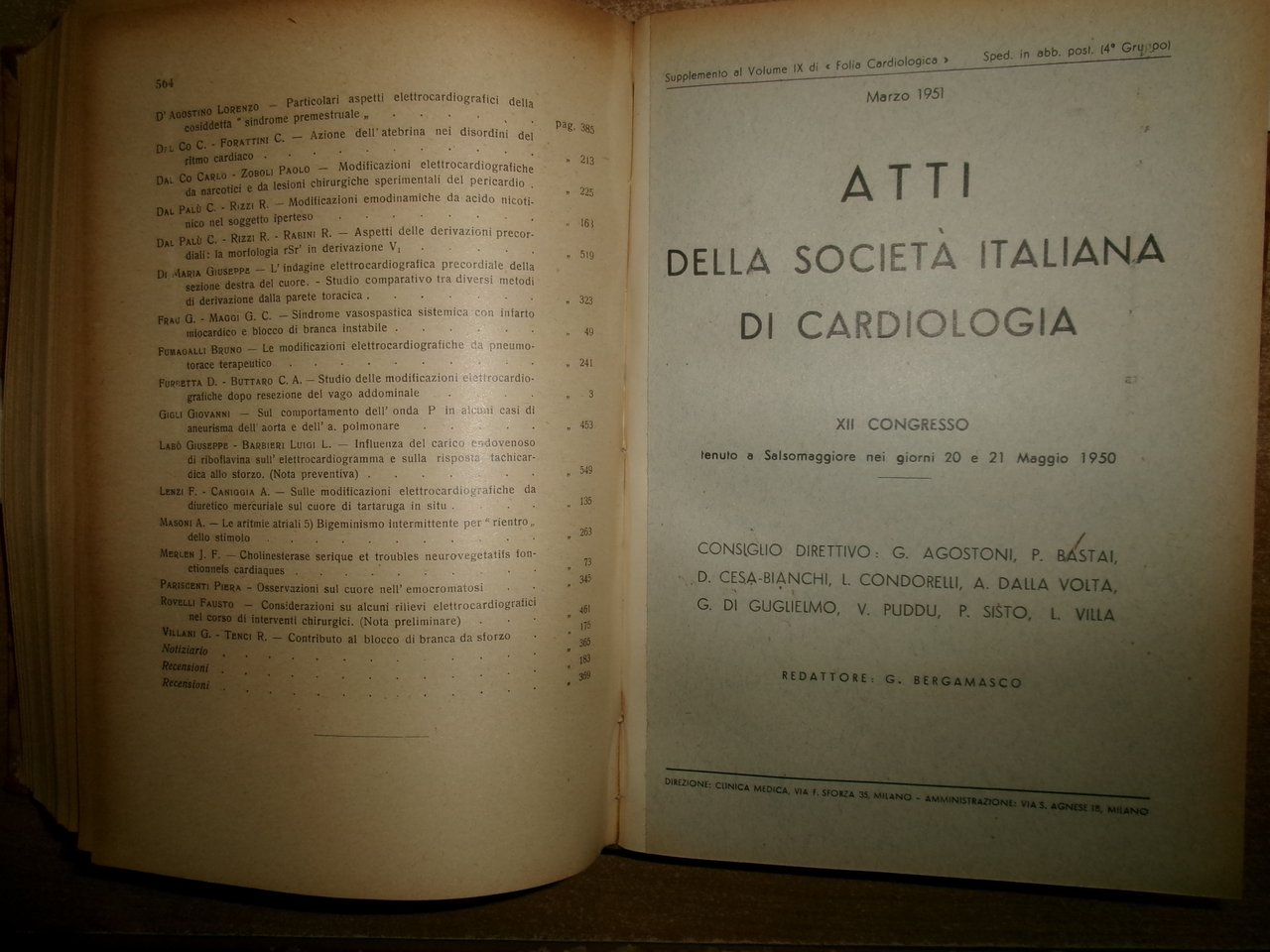 Autori Vari. FOLIA CARDIOLOGICA. Atti Soc. It. Card. 1940/1950