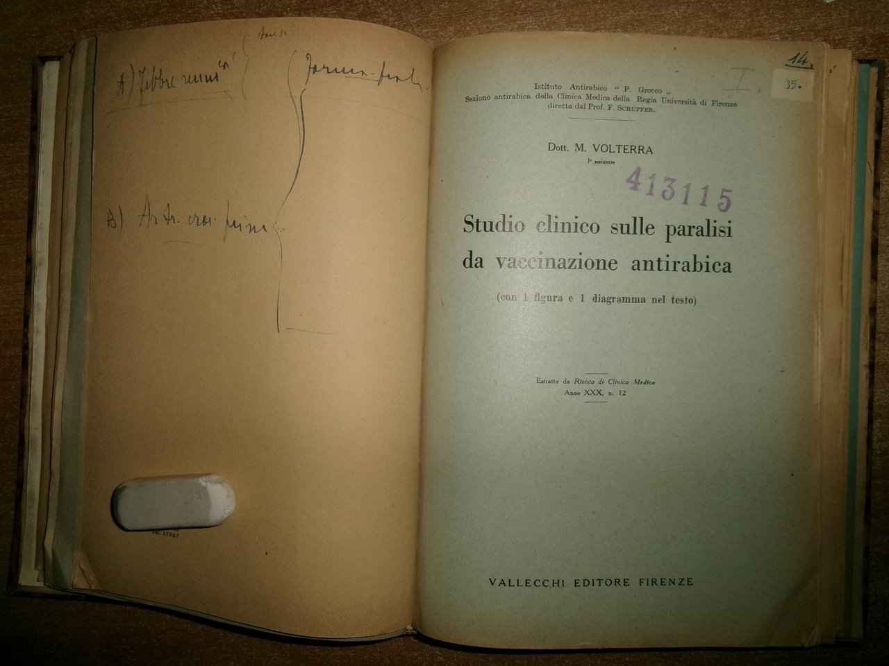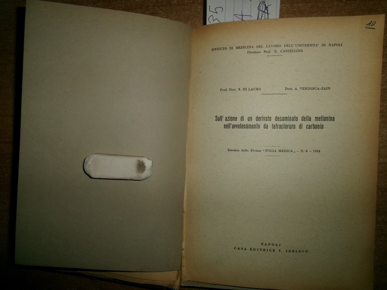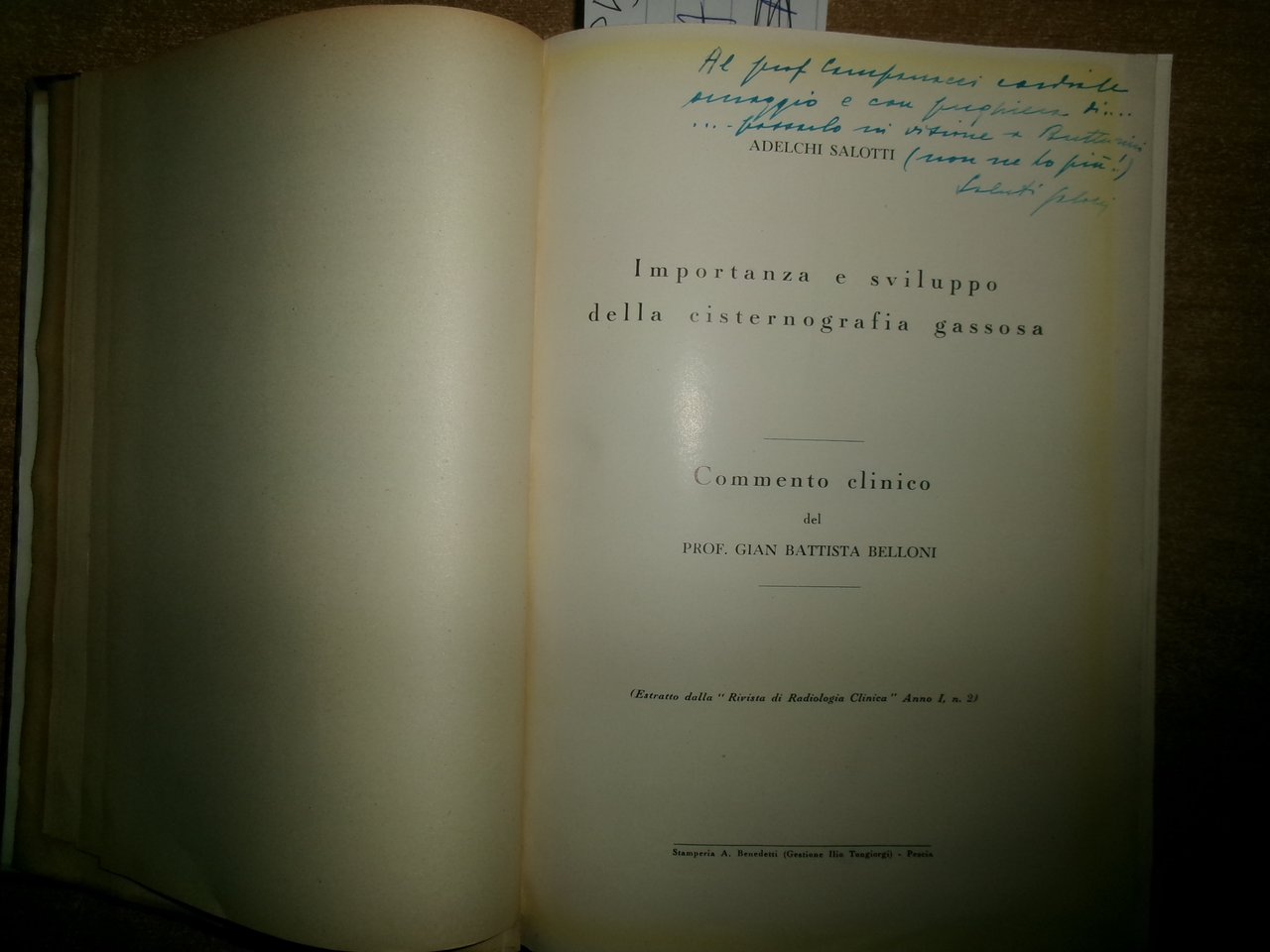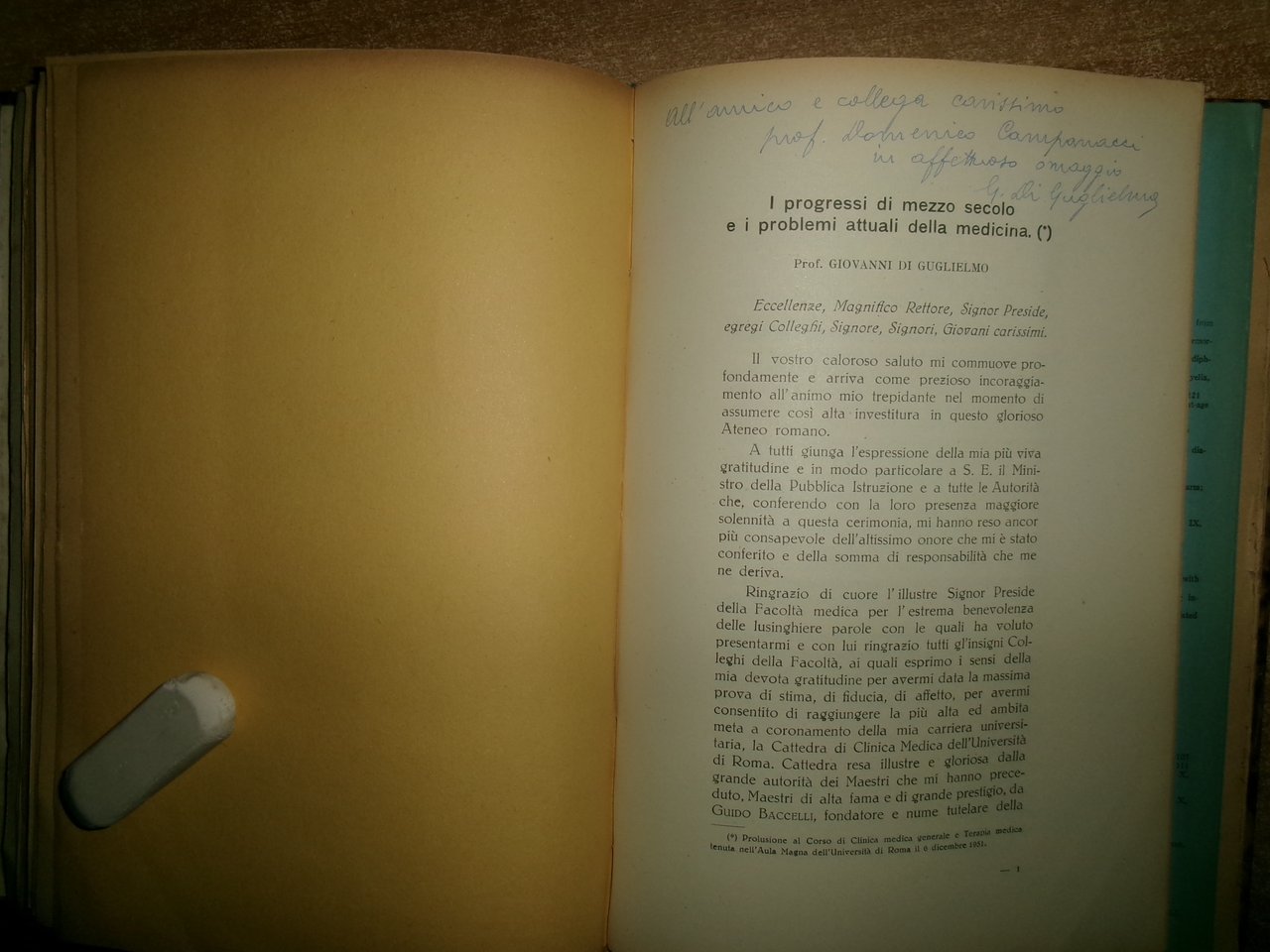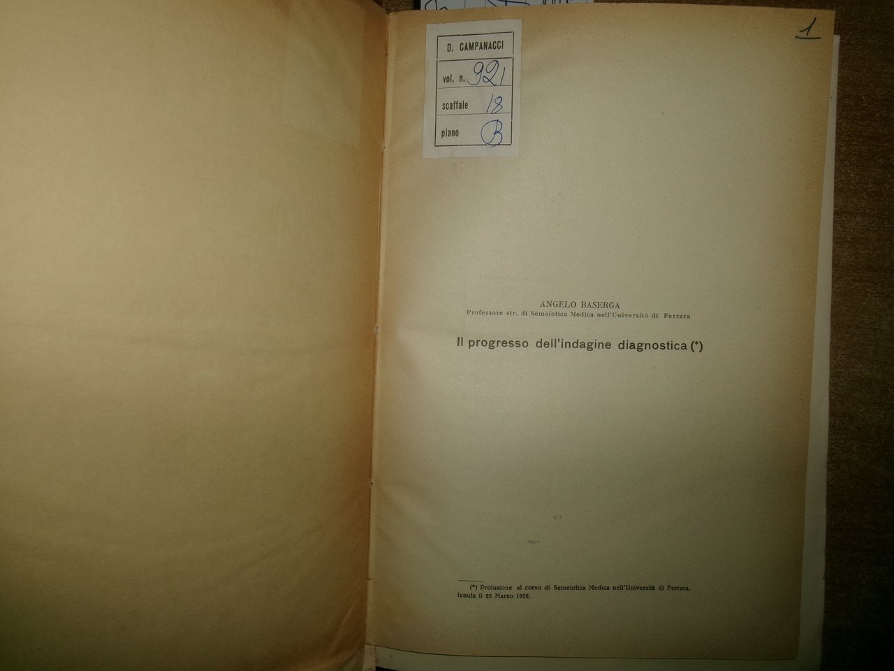Autori Vari MISCELLANEA di numerosi opuscoli/estratti riguardanti la Medicina Generale con date varie (1953). In-8°, m-tela con titolo in oro al dorso con alcune figure in nero n.t. e indice dattiloscritto all' inizio del libro. Testi la maggior parte in italiano. Sono presenti dediche firmate dagli Autori al Prof. Campanacci. Ben conservato. Uff. salon. sporta 11