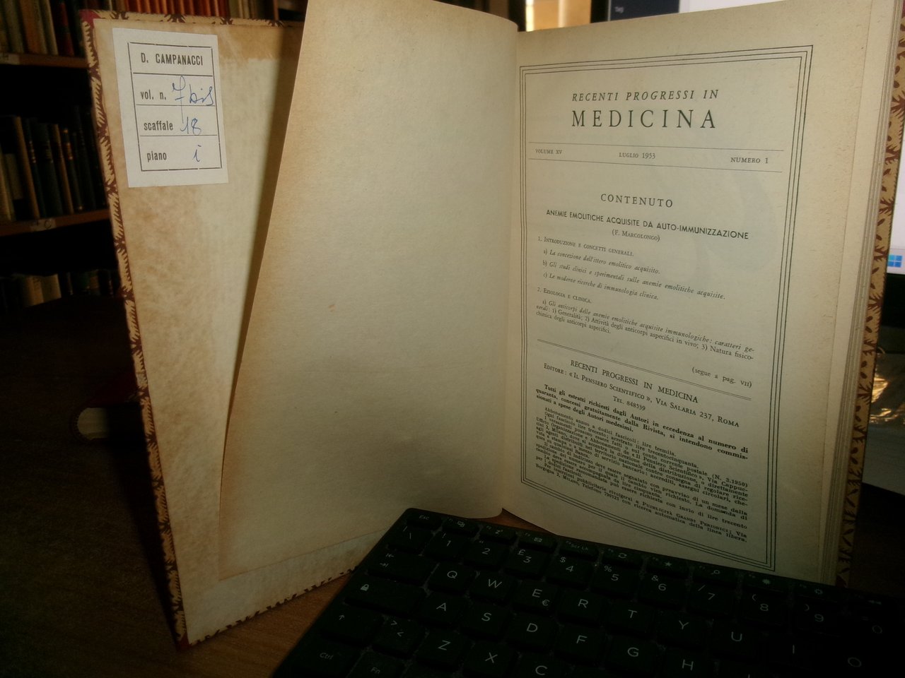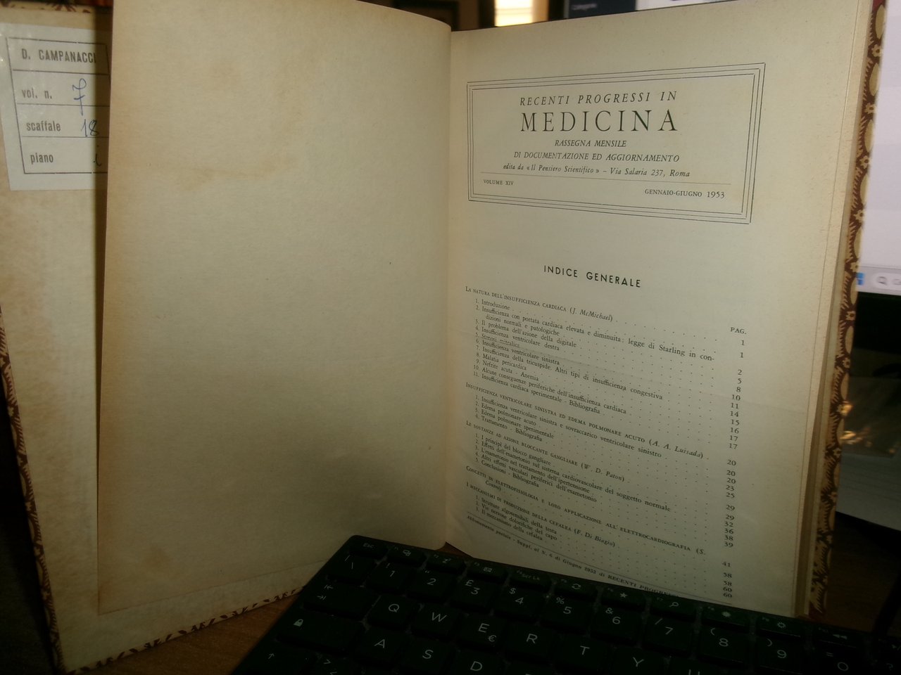 AUTORI VARI. RECENTI PROGRESSI in MEDICINA 1953. 2 volumi ex libris D. CAMPANACCI