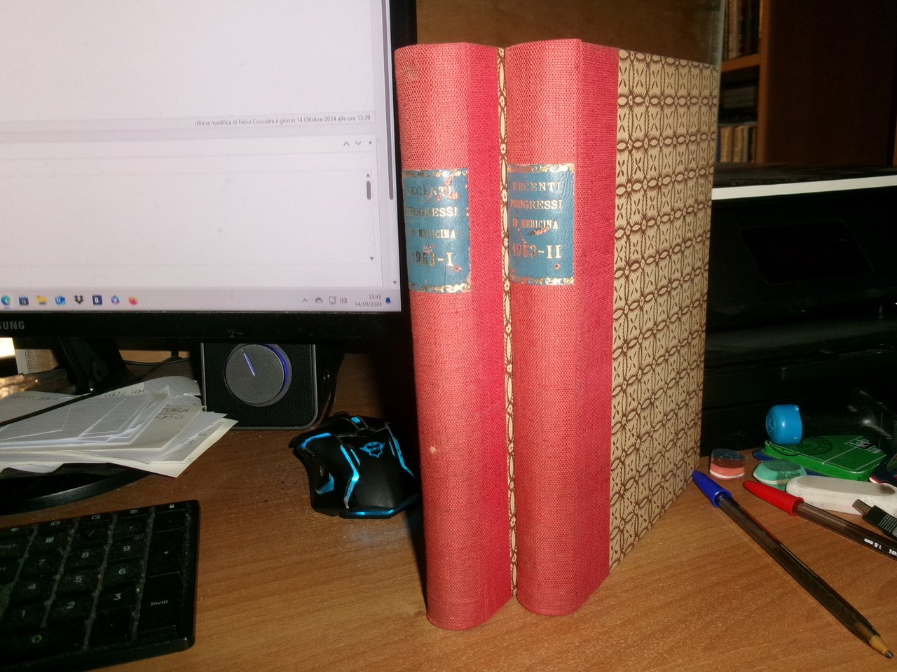 AUTORI VARI. RECENTI PROGRESSI in MEDICINA 1953. 2 volumi ex libris Domenico Campanacci. 2 volumi in-8°, m-tela rossa con titoli in oro entro tasselli ai dorsi. v, 567 pp.; 608 pp. con figure in nero n.t. Ottimo stato. Uff. salon. sporta 12