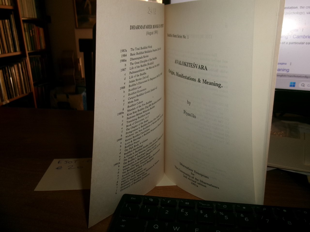 AVALOKITESVARA. Origin, Manifestations and Meanings. Malaysia, Dharmafarer Enterprises for The Comunity of the Dharmafarer, 1991. In-8° piccolo, br. ill.- a col. 77 pp. con alcune illustrazioni in bianco e nero n.t. Opuscolo come nuovo con testo in inglese. Neg. esot. mob. 102
