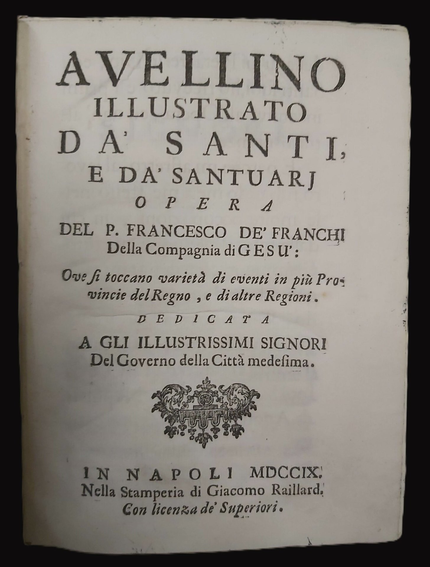AVELLINO ILLUSTRATO da' Santi e da' Santuarj. Opera del… della Compagnia di Gesù ove si toccano varietà di eventi in più Provincie del Regno e di altre Regioni.