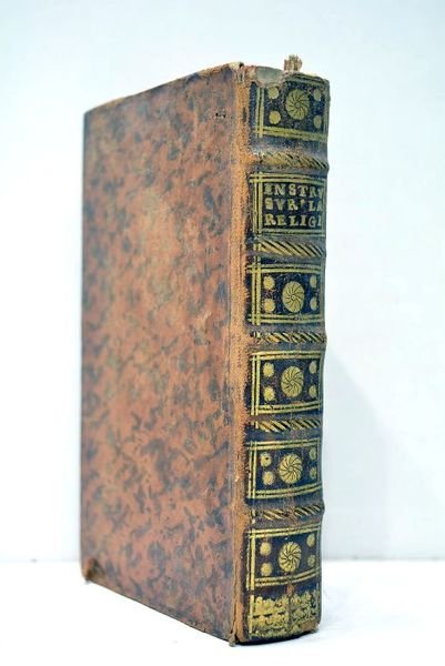 in-6. 3 ouvrages dans un volume. 1)131 pages. 2) 99 pages. 3) 205 pages. (16,5x10cm). Plein veau moucheté. Dos à nerfs avec caissons ornés de dorures. Titre sur pièce. Tranches rouges. Frottements légers. Charnières partiellement fendues. Petit travail de vers aux charnières en deux points. Petits accident à une coiffe. Feuillets liminaires insolés et brunis. Queqlues rousseurs, surtout dans la troisième partie. Très bon état par ailleurs. Deux instructions, en forme d'avertissements, contre les athées, les matérialistes, les épicuriens, les libertins et même les déistes ; à la suite, ouvrage pastoral d'apologétique, imprimé à Lyon, de Malvin de Montazet, archevêque et membre de l'Académie française, connu par de contemporains pour être "zélé contre les philosophes - dit Feller- ardent défenseur des prérogatives de son siège". Bandeaux, lettrines ornées, culs-de-lampe. Religion. Apologétique. Eglise catholique et athéisme. Reliure solide, excellent état intérieur.