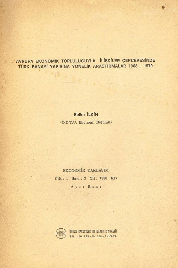 AVRUPA EKONOMIK TOPLULUGUYLA ILISKILER CERCEVESINDE TURK SANAYI YAPISINA YONELIK ARASTIRMALAR 1963 1979 | Libri antichi e moderni | Selim Ilkin