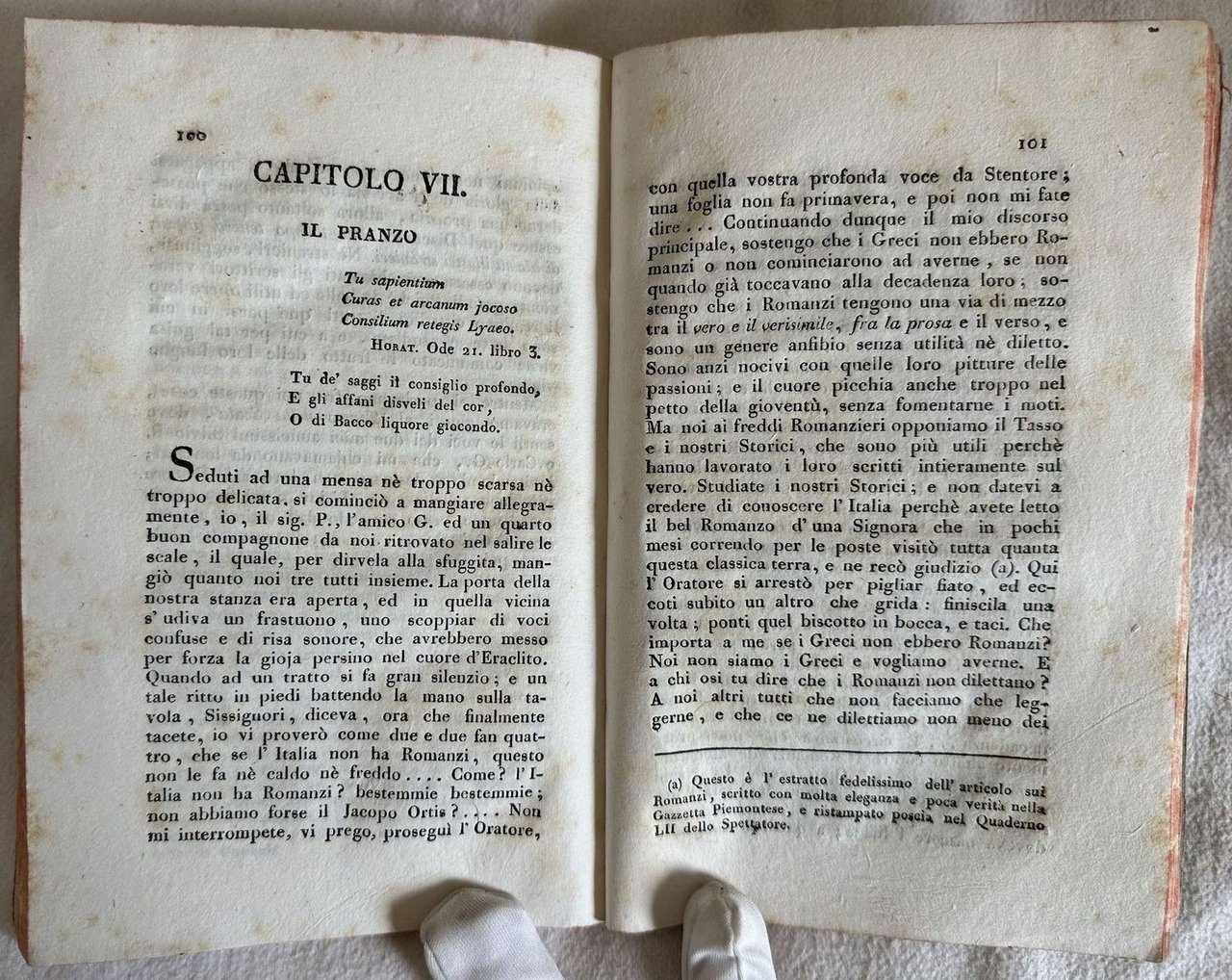 Prima edizione del 1816 pubblicata anonima di questo celebre romanzo di Pietro Borsieri (Milano 1788-Belgirate 1852) letterato e patriota.<BR><BR>L'opera, insieme al saggio di Ludovico di Breme "Intorno all'ingiustizia di alcuni giudizi letterari italiani" decreterano la nascita del romanticismo italiano.<BR><BR>Entrambi appoggiarono la posizione di Madame de Stael contro il classicismo, dopo che la stessa avviò il dibattito con la pubblicazione dell'articolo nel gennaio 1816 "Sulla maniera e l'utilità delle traduzioni".<BR><BR>Il romanzo narra delle avventure amorose e incontri mondani di un galantuomo a zonzo per Milano.<BR><BR>Tagli marmorizzati.<BR><BR>In buone condizioni e completo.<BR><BR> <BR><BR>Copertina morbida ottocentesca in buone condizioni general con lievi usure marginali. Legatura in buone condizioni. Pagine in buone condizioni con rare fioriture. In 8. cm 19,5x13. Pp. 135+(3). First edition of 1816 published anonymous of this famous novel by Pietro Borsieri (Milano 1788-Belgirate 1852) letterate and patriot. The work, together of the essay Ludovico di Breme "Intorno all'ingiustizia di alcuni giudizi letterari italiani" fixed the bearing of italian romanticism. They both took part the decision of Madame de Stael against the classicism, after she opened the debate with the publication of january 1816 "Sulla maniera e l'utilità delle traduzioni". The novel talks about the love adventure and society meetings of a loving man taking a trip in Milan. Marbled external edges of pages. In good conditions and complete. Soft cover of 19th century in good conditions wlightly worn in the extremities. Binding in good conditions. Pages in good conditions with occasional foxing. In 8. cm 19,5x13. Pp. 135+(3).