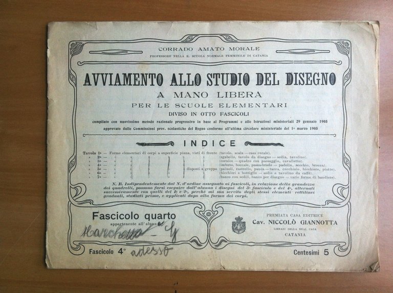 Avviamento allo studio del disegno a mano libera Fascicolo 4^ 1905 - E14815