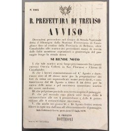 Avviso. R. Prefettura di Treviso. Comunicazione di inizio lavori in vista dello scarico dei massi pericolanti che si trovano nel tratto che va dalla Strada Nazionale detta d'Allemagna fino al confine della Provincia di Belluno