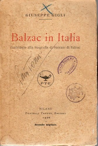 BALZAC IN ITALIA CONTRIBUTO ALLA BIOGRAFIA DI ONORATO DI BALZAC