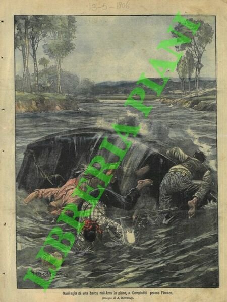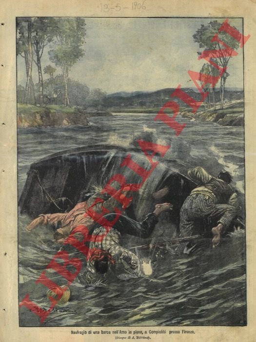 Barca naufraga nell'Arno in piena a Campiobbi presso Firenze.