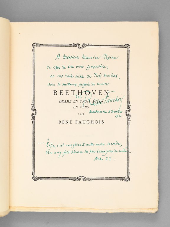 Beethoven. Drame en trois actes en vers [ Edition originale - Livre dédicacé par l'auteur - Avec une L.A.S. de l'auteur ]