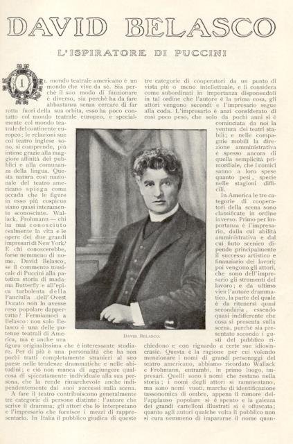 BELASCO ISPIRATORE DI PUCCINI. Estratto da "La Lettura", anno XI, maggio 1911. | Libri antichi e moderni | Ferrero Felice.